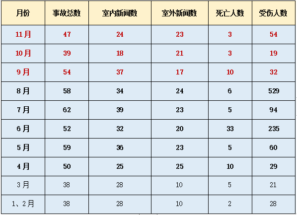【爆炸数据】11月份全国燃气爆炸数据分析报告及典型事故案例推送
